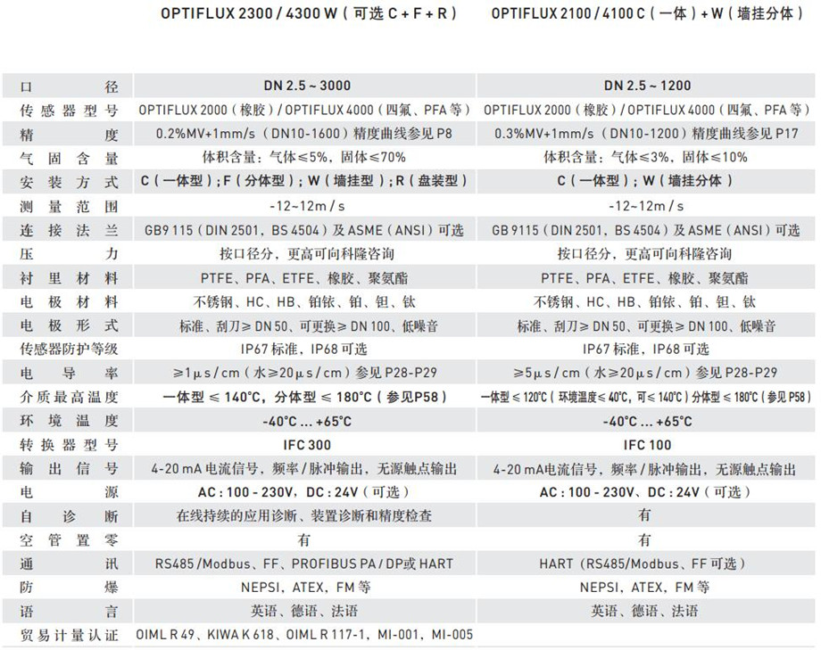 傳感器型號:OPTIFLUX4000/OPTIFLUX2000