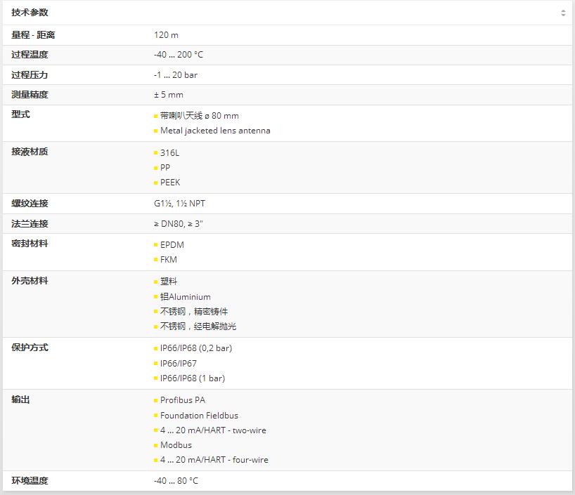 對于小型槽罐,或當位置很緊湊時,小型過程接口具有特殊優點。因信號聚焦能力很強,故可以用于大型料倉中或帶有許多內裝件的容器中。
