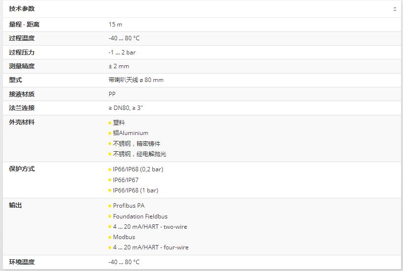 物位-雷達傳感器VEGAPULS 67用于經(jīng)濟劃算地測量固料物位。它連續(xù)提供高15米料倉、破碎機或小型容器內(nèi)的固料物位的測量值。它是用于簡單固料物位測量的經(jīng)濟劃算的方法,主要用于食品行業(yè)、塑料加工行業(yè)、鋼鐵行業(yè)和建材行業(yè)。可以這么說,VEGAPULS 67是VEGAPULS 68的“弟弟”,VEGAPULS 68用于在復(fù)雜過程條件下測量固料物位。