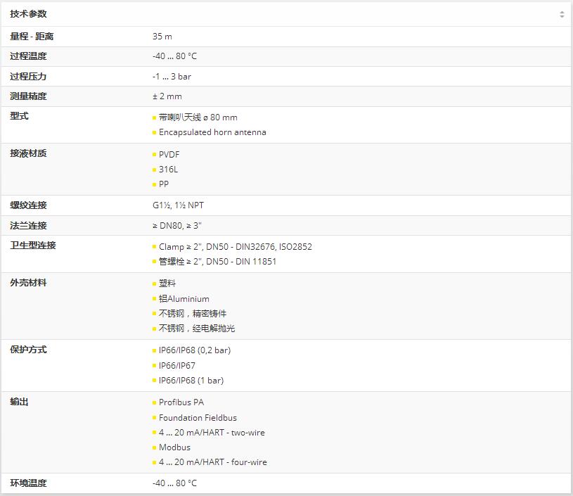 雷達物位計VEGAPULS 61在連續(xù)非接觸測量容器內液位的應用中,雷達傳感器VEGAPULS 61被廣泛應用。雷達傳感器的應用遍及幾乎各個工業(yè)領域。特別是在污水處理廠、污水處理裝置、環(huán)境及能源行業(yè)的設備上使用這種經濟劃算的雷達傳感器,用于連續(xù)物位測量。